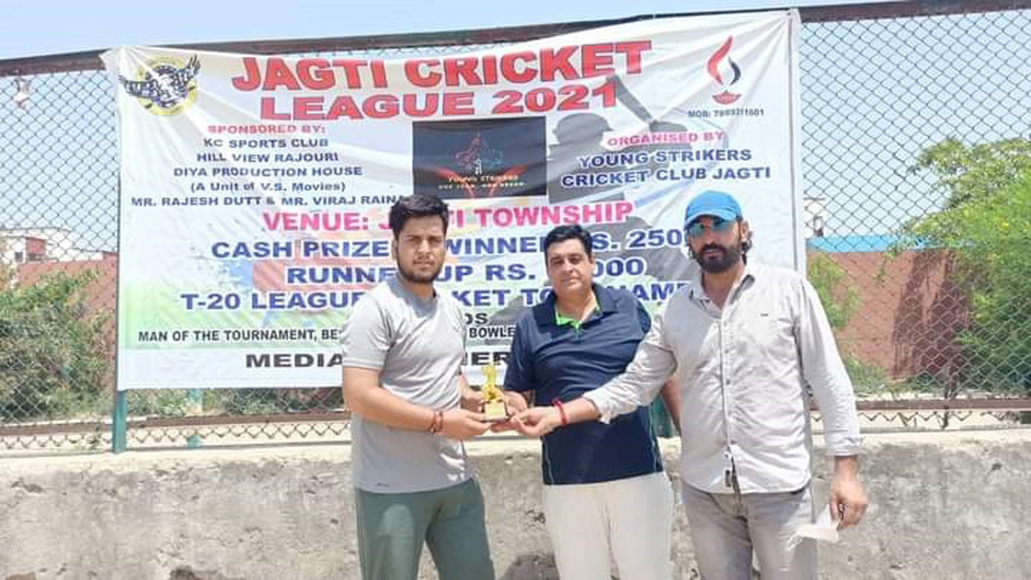 A player being awarded with man of the match trophy during Jagti Cricket League match on Monday. By Daily Excelsior - June 29, 2021 Share FacebookTwitterWhatsAppPinterestLinkedinCopy URLTelegramEmailTumblrReddItPrintKoo A player being awarded with man of the match trophy during Jagti Cricket League match on Monday. A player being awarded with man of the match trophy during Jagti Cricket League match on Monday. Follow our WhatsApp channel