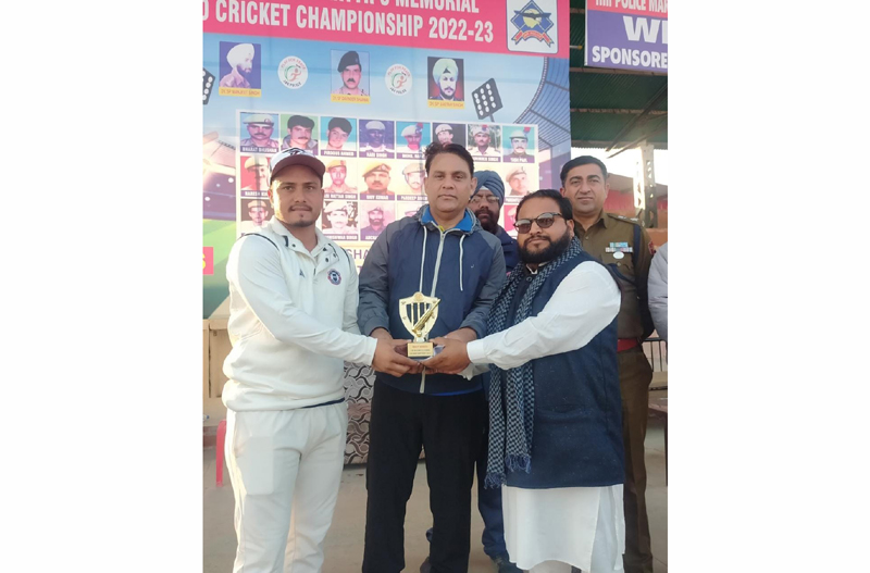 A player being awarded with trophy by SSP RC Kotwal at Kathua on Friday.