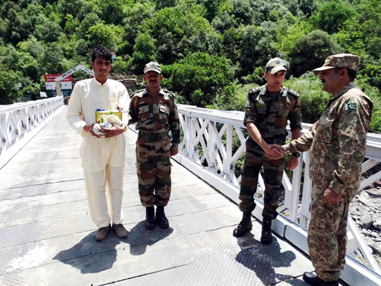 A PoK resident, Kashif Baig being handed over to his family members after a flag meeting at Uri crossing point located close to Kaman Aman Setu on Saturday. (UNI)