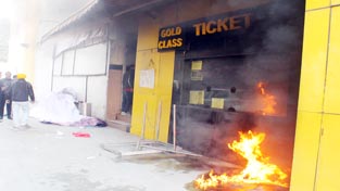 A portion of cinema hall set on fire by protesters at Jammu on Wednesday. —Excelsior/Rakesh By Daily Excelsior - January 25, 2018 Share FacebookTwitterWhatsAppPinterestLinkedinCopy URLTelegramEmailTumblrReddItPrintKoo A portion of cinema hall set on fire by protesters at Jammu on Wednesday. —Excelsior/Rakesh A portion of cinema hall set on fire by protesters at Jammu on Wednesday. —Excelsior/Rakesh Follow our WhatsApp channel