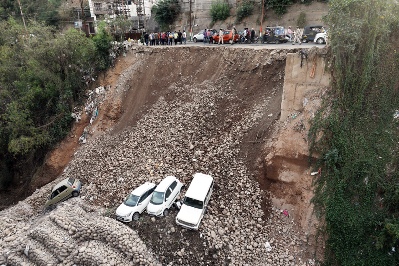 A portion of Circular Road in Jammu which caved in. —Excelsior/Rakesh