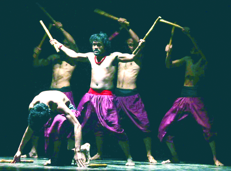 A scene from Hindi play Andha Yug staged at Abhinav Theatre on Tuesday. Excelsior/Rakesh