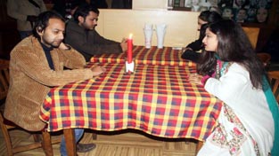 A scene from the play 'Uljhan' staged at Chanakya Restaurant on Wednesday.