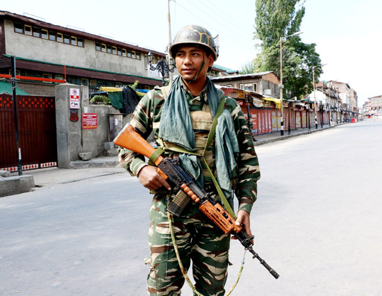 A security personnel stands guard to enforce curfew at Lal Chowk area of Srinagar on Saturday. -Excelsior/ Shakeel By Daily Excelsior - August 21, 2016 Share FacebookTwitterWhatsAppPinterestLinkedinCopy URLTelegramEmailTumblrReddItPrintKoo A security personnel stands guard to enforce curfew at Lal Chowk area of Srinagar on Saturday. -Excelsior/ Shakeel A security personnel stands guard to enforce curfew at Lal Chowk area of Srinagar on Saturday. -Excelsior/ Shakeel Follow our WhatsApp channel