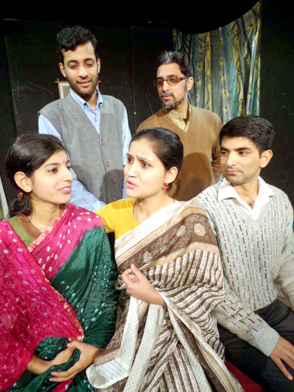 A seene from the play ‘Bahu Ki Vida’ staged by Natrang at Jammu on Sunday.