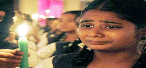A student breaks down while paying tribute to former President A P J Abdul Kalam at Everwin Matric School, in Chennai on Tuesday. (UNI)
