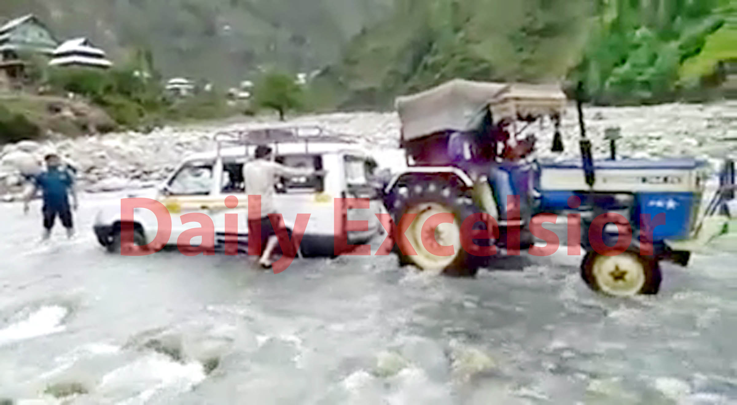 A tractor trying to pull out a Tata Sumo struck in Shadole nallah in Tehsil Mahore of Reasi district. By Daily Excelsior - May 14, 2019 Share FacebookTwitterWhatsAppPinterestLinkedinCopy URLTelegramEmailTumblrReddItPrintKoo A tractor trying to pull out a Tata Sumo struck in Shadole nallah in Tehsil Mahore of Reasi district. A tractor trying to pull out a Tata Sumo struck in Shadole nallah in Tehsil Mahore of Reasi district. Follow our WhatsApp channel
