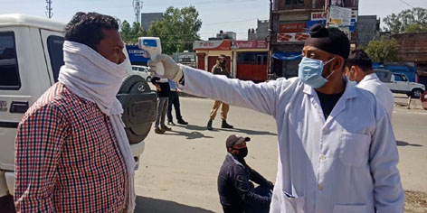 A traveller being checked in Samba on Thursday. -Excelsior/ Badyal By Daily Excelsior - March 27, 2020 Share FacebookTwitterWhatsAppPinterestLinkedinCopy URLTelegramEmailTumblrReddItPrintKoo A traveller being checked in Samba on Thursday. -Excelsior/ Badyal A traveller being checked in Samba on Thursday. -Excelsior/ Badyal Follow our WhatsApp channel