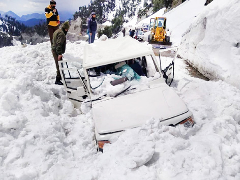 A vehicle of SDM which came under snow avalanche. By Daily Excelsior - April 22, 2020 Share FacebookTwitterWhatsAppPinterestLinkedinCopy URLTelegramEmailTumblrReddItPrintKoo A vehicle of SDM which came under snow avalanche. A vehicle of SDM which came under snow avalanche. Follow our WhatsApp channel