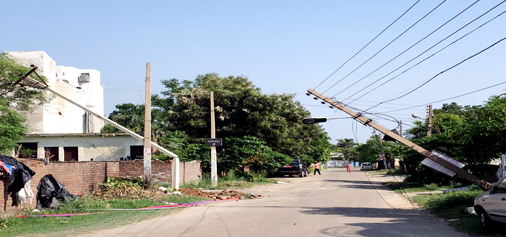 A view of broken poles in Channi Himmat area of Jammu.  —Excelsior/Rakesh