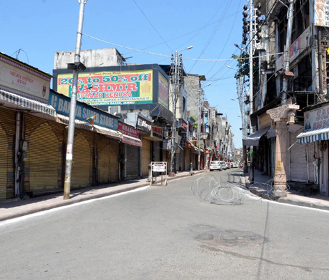 A view of deserted Raghunath Bazaar in Jammu on Thursday. — Excelsior/Rakesh