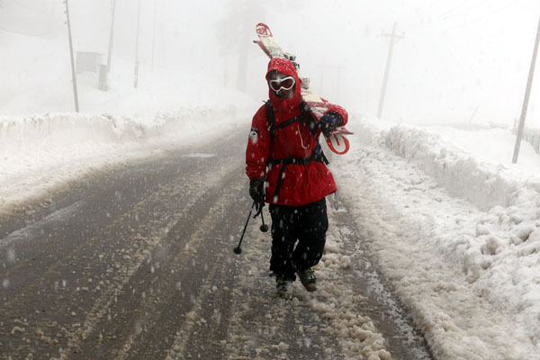 A view of heavy snowfall at Gulmarg on Tuesday.