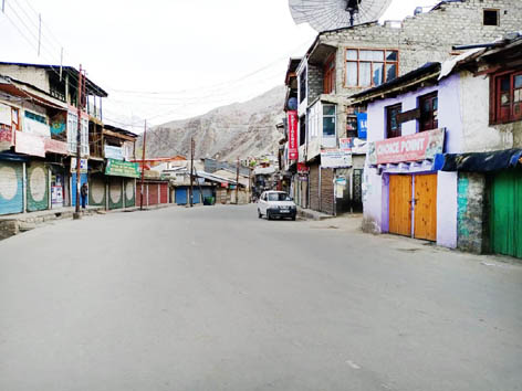 A view of Kargil main bazar during lockdown time. -Excelsior/ Basharat Ladakhi