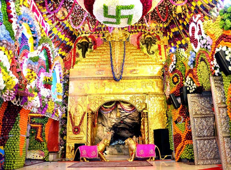 A view of Shri Mata Vaishno Devi Bhawan situated in Trikuta Hills in Reasi district on the occasion of Navratra festival on Saturday. (UNI)
