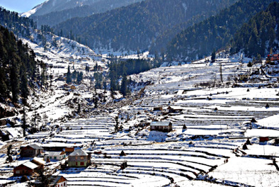 A view of snow covered Nalthi village in Bhaderwah on Sunday. (UNI)