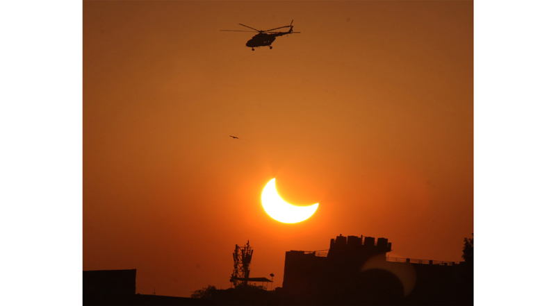 A view of solar eclipse in Jammu with a helicopter flying in background on Tuesday. —Excelsior/Rakesh By Daily Excelsior - October 26, 2022 Share FacebookTwitterWhatsAppPinterestLinkedinCopy URLTelegramEmailTumblrReddItPrintKoo A view of solar eclipse in Jammu with a helicopter flying in background on Tuesday. —Excelsior/Rakesh A view of solar eclipse in Jammu with a helicopter flying in background on Tuesday. —Excelsior/Rakesh Follow our WhatsApp channel