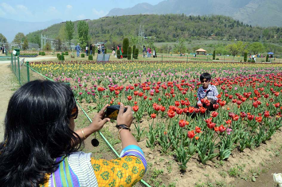 A woman clicking a picture of her son in the Asia’s largest Tulip garden on the foothills of Zabarwan in Srinagar on Wednesday. By Daily Excelsior - April 22, 2015 Share FacebookTwitterWhatsAppPinterestLinkedinCopy URLTelegramEmailTumblrReddItPrintKoo Follow our WhatsApp channel