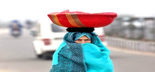 A woman goes ahead with her routine work despite extreme chill in Jammu on Wednesday. -Excelsior/Rakesh