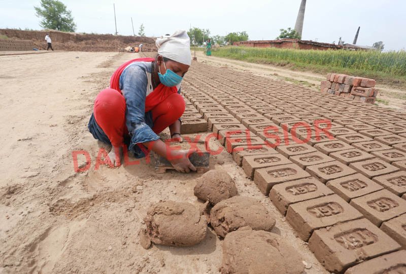 A woman labourer wearing mask working at a brick kiln on Jammu outskirts.(UNI) By Daily Excelsior - April 20, 2020 Share FacebookTwitterWhatsAppPinterestLinkedinCopy URLTelegramEmailTumblrReddItPrintKoo A woman labourer wearing mask working at a brick kiln on Jammu outskirts.(UNI) A woman labourer wearing mask working at a brick kiln on Jammu outskirts.(UNI) Follow our WhatsApp channel