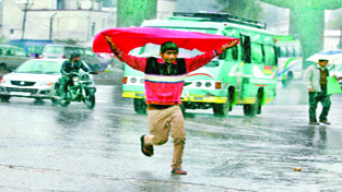 A youth runs for cover during heavy rains in Jammu on Saturday.      -Excelsior/Rakesh