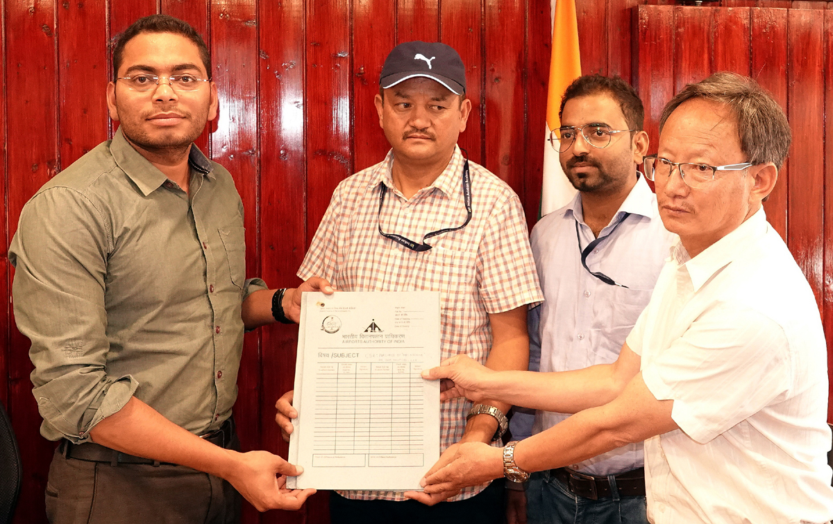 The Deputy Commissioner & Chief Executive Officer, LAHDC, Leh Sachin Kumar Vaishya and Airport Director (Nodal Officer of Airport Authority of India) Sonam Norbu signed on the MoU today. Addl District Development Commissioner, Leh, Moses Kunzang, CMO Leh Dr Motup Dorjey, Supdt SNM, Hospital Dr Tsering Samphel and officers of administration and Airport Authority of India were also present on the occasion.