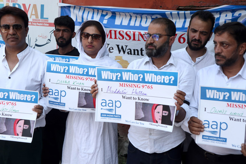 She said the AAP launched a signature campaign to garner support for the cause of the missing women in Jammu and Kashmir. “We demand a detailed report on who the missing women are, who is responsible for their disappearance, and where they are now. Those responsible must face harsh punishment. We urge people to issue an official report on this matter,” the protestor said.