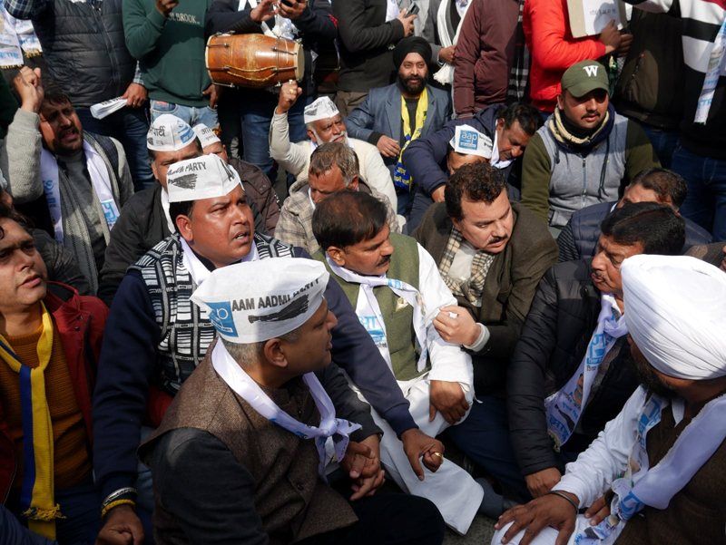 Harshdev Singh, SS Shringari, Mehraj Malik, Yashpal Kundal, Raj Kapoor, Amit Kapoor, Reena Chaudhary, Rajesh Padgotra, Heera Lal Varma, Raj Kumar Nischal, Dixit Gupta, Raj Mohd Salaria, Amrit Wattal, Parminder Singh, Rajesh Bali and other senior leaders of party were present during the protest.