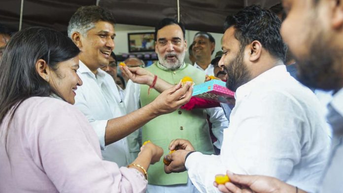 Thanking the voters for the wins, Aam Aadmi Party (AAP) chief Arvind Kejriwal called the bypolls a “semi-final to 2027” and a clear sign that voters would reject both the BJP and the Congress.(PTI)
