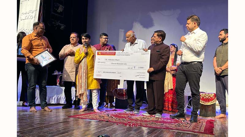 JAMMU, Mar 28: Renowned theatre artist from Jammu, Abhishek Bharti has been awarded Shri Nirmal Pandey Ras Rang Samman in the 12th Chalo Theatre, National Theatre Festival for his contributions to the regional theatre of J&K.