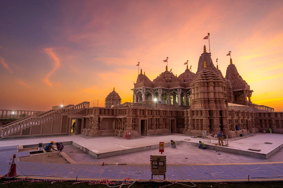 Seven spires representing the seven Emirates of the UAE, carvings of camels, and national bird falcon, are part of the architecture of the stone temple, to give equal representation to the host country.