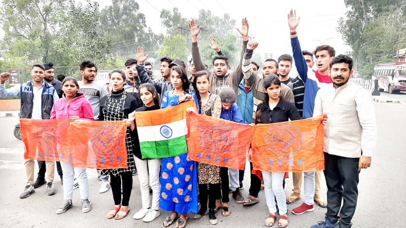 The ABVP activists led by Mayank Bagotra, Bibag Parcharak assembled on the College road and raised protest against the JKP and UT Government. They said that the youth are protesting for their rights and administration is responsible for lathicharge and cruel attitude towards them .