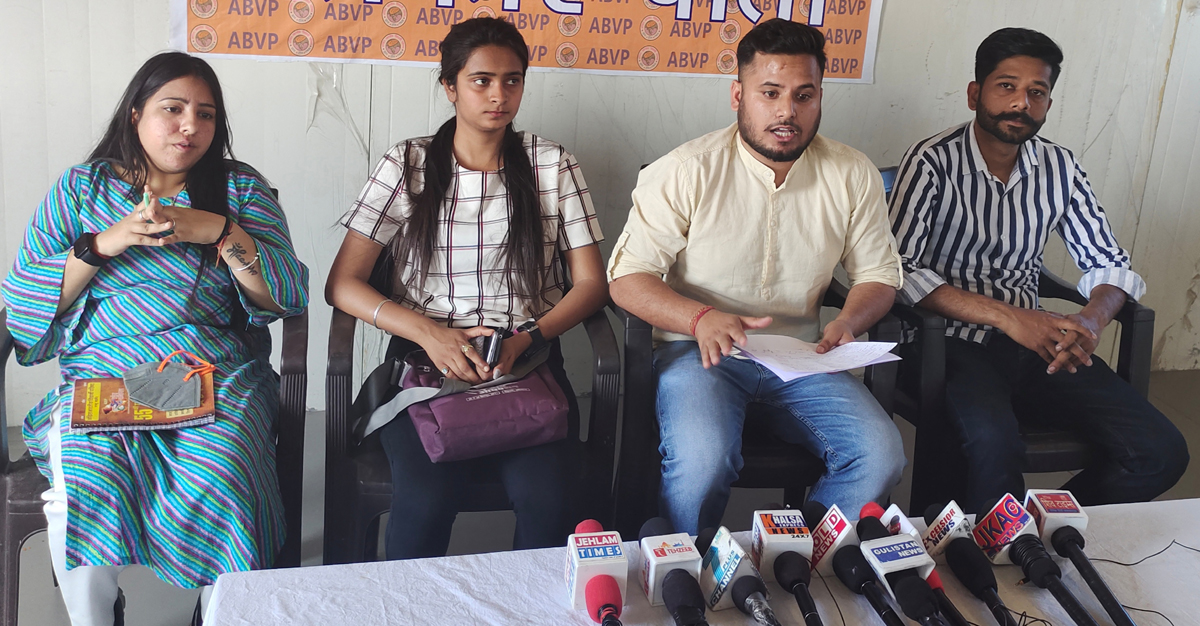 Giving details, here today, ABVP State Secretary Mukesh Manhas informed that in the first resolution related to Education, ABVP demanded early implementation of NEP 2020, student Union elections in colleges and universities of J&K , permanent posting of Vice-Chancellors in universities and implementation of One Man, One Post policy in universities.
