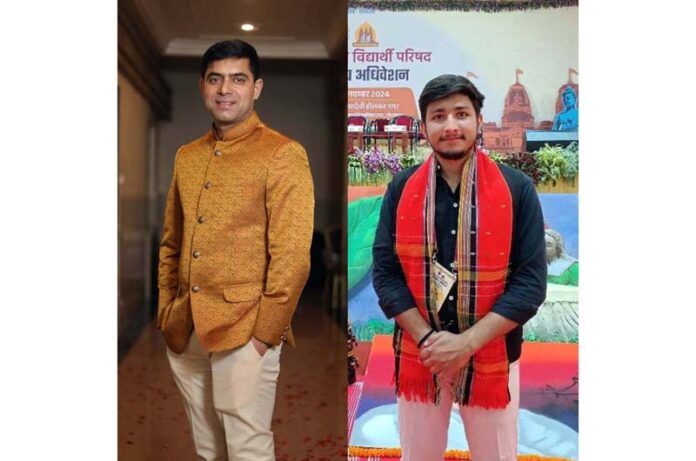 JAMMU, Dec 24: Dr Ajay Sharma (Udhampur) and Sannak Shrivats (Jammu) have been re-elected as State President and State Secretary, respectively of Akhil Bharatiya Vidyarthi Parishad (ABVP) Jammu Kashmir.