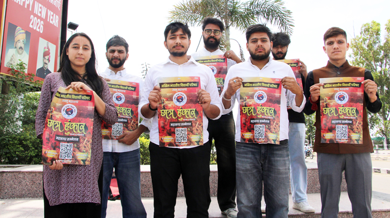 Talking to media persons, here today, ABVP highlighted key issues troubling students, including the absence of a permanent campus for Cluster University, an acute shortage of teaching and non-teaching staff, arbitrary fee hikes, and the ineffective implementation of the National Education Policy 2020. It also raised concerns over the continued denial of student union elections, safety and empowerment of girl students, and the growing menace of drug abuse on campuses.