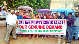 Academic arrangements staff of Govt Polytechnics protesting on Wednesday. By Daily Excelsior - June 29, 2017 Share FacebookTwitterWhatsAppPinterestLinkedinCopy URLTelegramEmailTumblrReddItPrintKoo Academic arrangements staff of Govt Polytechnics protesting on Wednesday. Academic arrangements staff of Govt Polytechnics protesting on Wednesday. Follow our WhatsApp channel