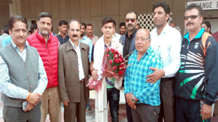 Ace Fencer Sagar being welcomed by the dignitaries in Jammu on Monday. By Daily Excelsior - March 1, 2016 Share FacebookTwitterWhatsAppPinterestLinkedinCopy URLTelegramEmailTumblrReddItPrintKoo Ace Fencer Sagar being welcomed by the dignitaries in Jammu on Monday. Ace Fencer Sagar being welcomed by the dignitaries in Jammu on Monday. Follow our WhatsApp channel