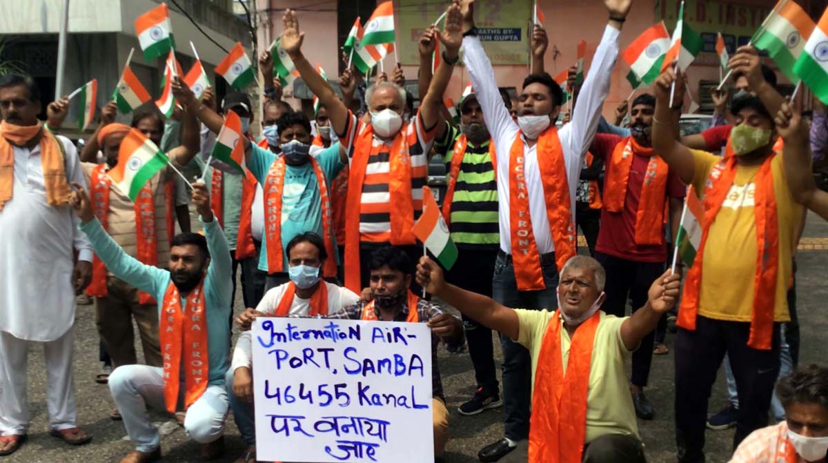 Activists of Dogra Front & Shiv Sena during a protest at Jammu on Sunday.