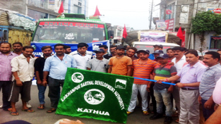 KATHUA, Aug 25: The Additional Deputy Commis-sioner, Kathua, Dr Bharat Bhushan today flagged off Kailash Kund Yatra Langer Committees from Kathua’s Shahidi Chowk amidst beating of drums in an atmosphere full of religious fervor and enthusiasm.