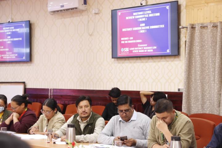 The meeting was convened by Lead Bank Chief Manager Stanzin Dolkar, who presented the banking performance report for the quarter and apprised the chair about the Credit-Deposit (CD) ratio, priority sector lending, and overall credit flow in the district.