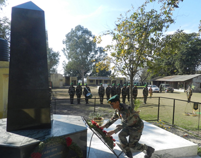 ADG NCC Maj Gen Sudhir Singh Jakhar laying wreath at war memorial in Pargwal area of Akhnoor on Monday.