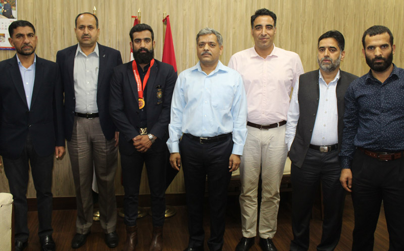 JAMMU, Nov 12: ADGP Armed J&K Arun Kumar Choudhary felicitated J&K Police Wushu player Surya Bhanu Partap Singh and National Chief Coach (Wushu) Kuldeep Handoo for winning Bronze Medal in 9th Sanda World Cup held in Hangzhou, China.