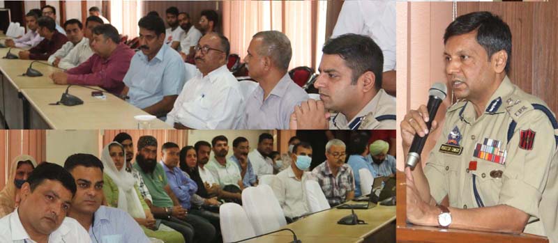 ADGP Mukesh Singh expressing his views during a function at Jammu on Friday.