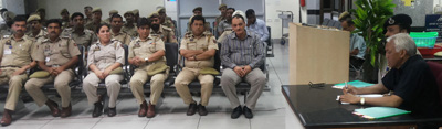 JAMMU, July 4: In order to ensure adequate security arrangements at Jammu Airport and to know about grievances of the staff deployed there, the Additional Director General of Police Security (ADGP), V. K. Singh held a durbar at the airport which was attended by the jawans and officers deployed at the airport.