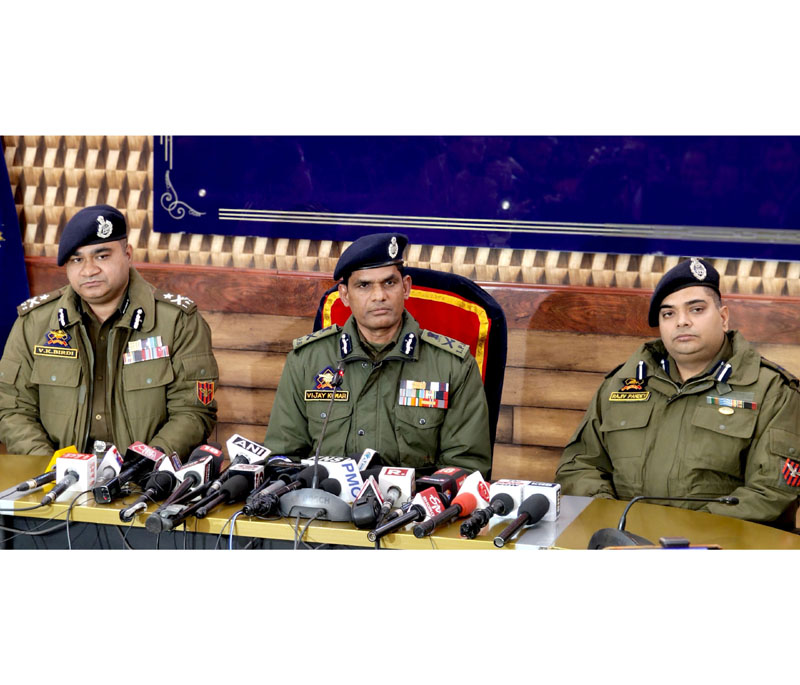 ADGP Vijay Kumar and IGP Kashmir VK Birdi addressing a press conference in Srinagar on Tuesday. -Excelsior/Shakeel By Daily Excelsior - February 14, 2024 Share FacebookTwitterWhatsAppPinterestLinkedinCopy URLTelegramEmailTumblrReddItPrintKoo ADGP Vijay Kumar and IGP Kashmir VK Birdi addressing a press conference in Srinagar on Tuesday. -Excelsior/Shakeel ADGP Vijay Kumar and IGP Kashmir VK Birdi addressing a press conference in Srinagar on Tuesday. -Excelsior/Shakeel Follow our WhatsApp channel