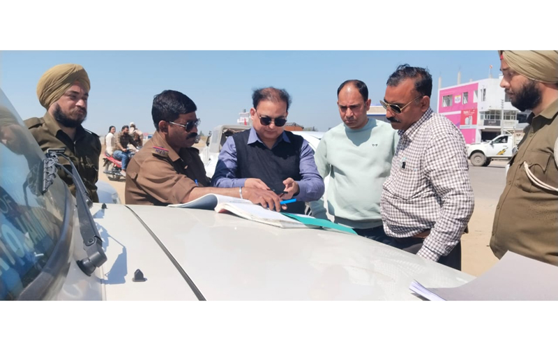 Administrative Secretary Transport, Neeraj Kumar inspects road checking Naka at Raya Morh on Saturday.