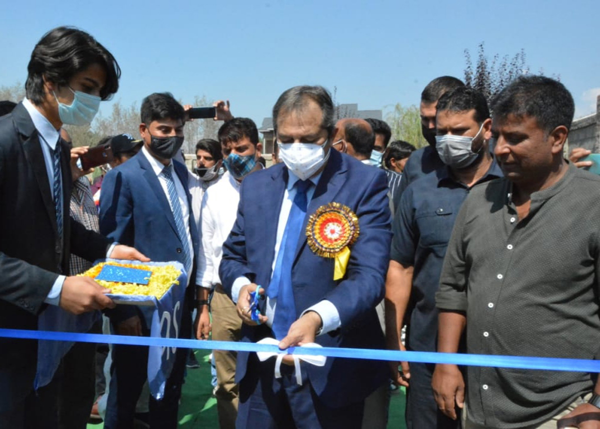 Advisor Baseer Khan inaugurating MS Dhoni Academy at Srinagar on Saturday.
