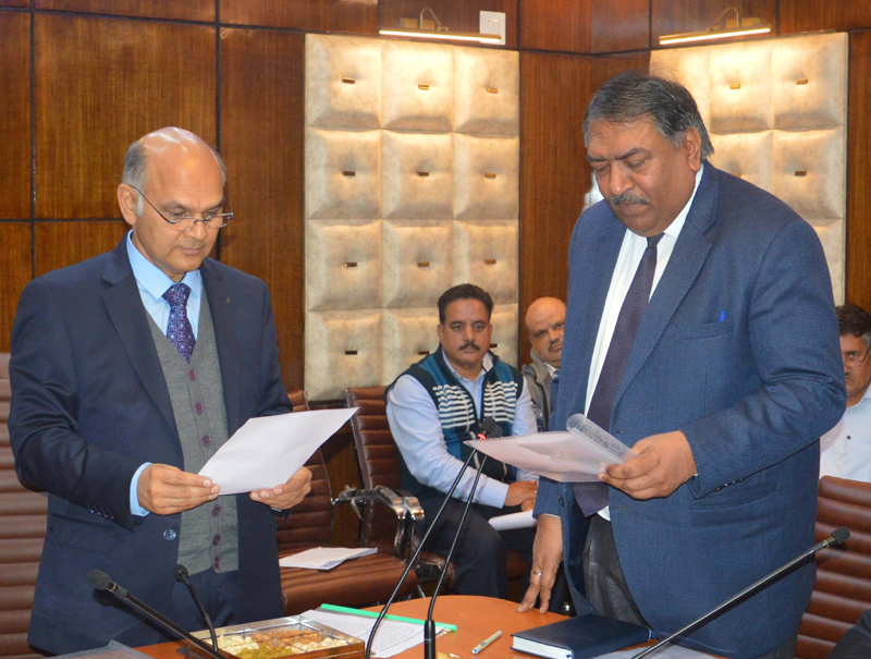 Advisor K K Sharma administering oath to Lokesh Dutt Jha as JKSERC Chairman on Thursday. By Daily Excelsior - May 16, 2019 Share FacebookTwitterWhatsAppPinterestLinkedinCopy URLTelegramEmailTumblrReddItPrintKoo Advisor K K Sharma administering oath to Lokesh Dutt Jha as JKSERC Chairman on Thursday. Advisor K K Sharma administering oath to Lokesh Dutt Jha as JKSERC Chairman on Thursday. Follow our WhatsApp channel