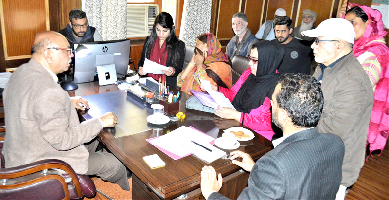 Advisor K Skandan interacting with a deputation in Srinagar on Monday.