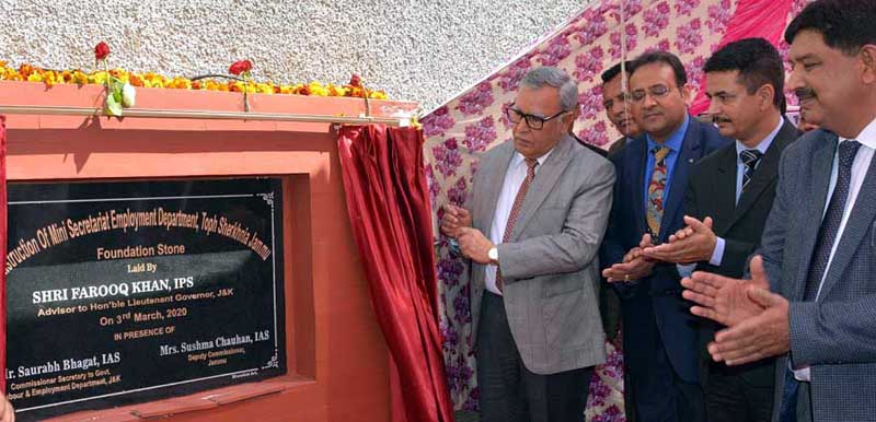 JAMMU, Mar 3: Advisor to Lieutenant Governor Farooq Khan today laid the foundation stone for Mini Secretariat, Employment Complex, at Toph Sherkhaniya.