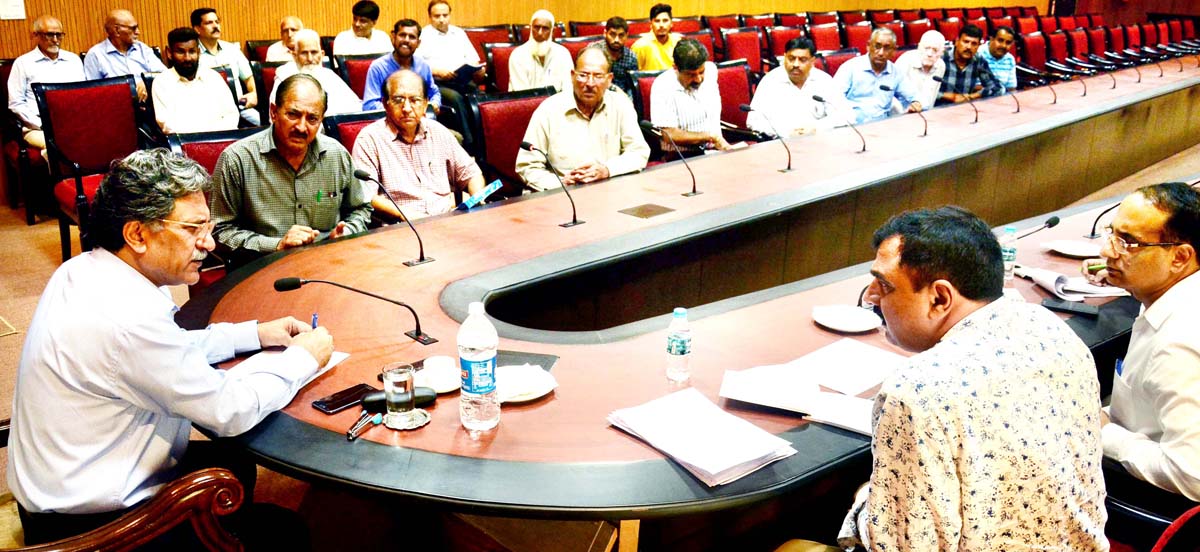 Advisor Khurshid Ahmed Ganai interacting with a delegation in Jammu on Monday.